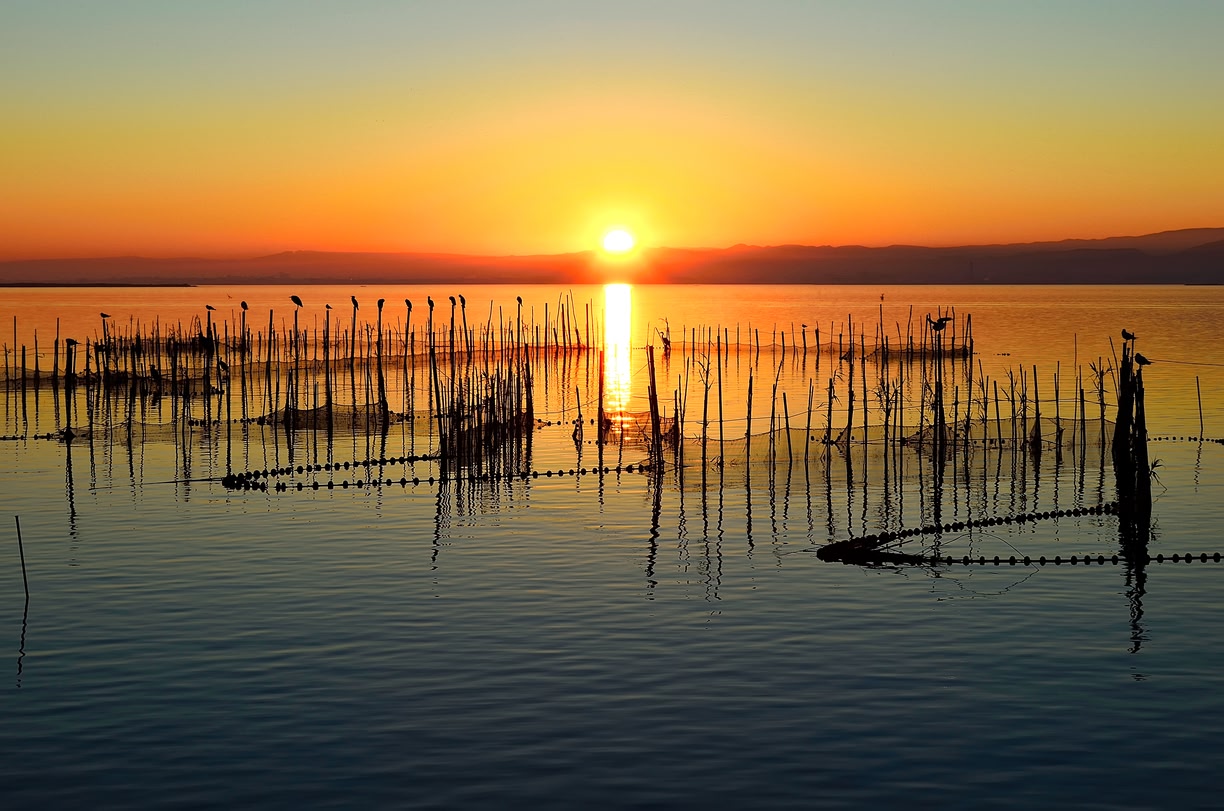 A pocos minutos de la ciudad, la Albufera es un refugio de naturaleza pura. Un enorme lago rodeado de arrozales donde el tiempo parece ralentizarse. El atardecer aquí es uno de los más hermosos de España: el cielo se tiñe de naranjas y fucsias mientras las barcas cruzan el agua en silencio. Un lugar para desconectar, degustar un auténtico arroz valenciano y respirar un Mediterráneo diferente.