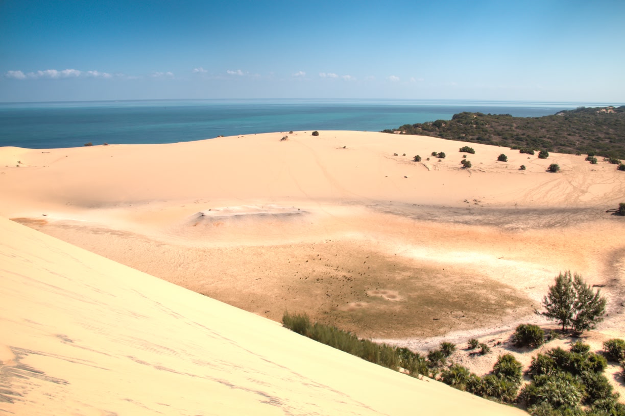 Dunas que acaban en largas playas solitarias y parajes de verdes arbustos que emergen de la arena junto a pequeñas lagunas imposibles, se enfrentan a un océano Índico que parece querer mostrar todas las tonalidades posibles de azul frente a la costa sur de Mozambique. Añade a esto un fondo marino rico en vida y color y tienes un archipiélago de islas que te dejarán prendado de por vida. Si eliges bien la temporada –entre noviembre y abril- puedes además llegar a nadar junto al mamífero más grande que existe: el tiburón ballena.