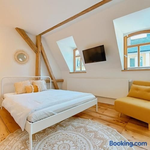 Situated 31 km from Festhalle Plauen, 35 km from Vogtland Stadium and 36 km from King Albert Theatre, Bad Elster, Gemütliches Studio im Zentrum von Hof mit Designer-Wanne & 24h-Check-in offers accommodation located in Hof.