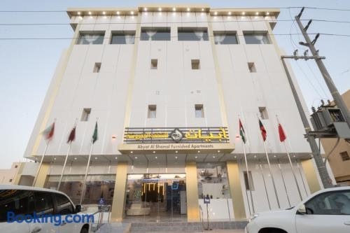 شقق ابيات الشمال للشقق المخدومة offers accommodation in Rafha. The accommodation features a 24-hour front desk, airport transfers, room service and free WiFi throughout the property.