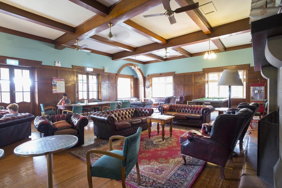 Set within a former Gentlemen's Club, YHA Newcastle Beach has retained heritage features including a communal lounge area with a fireplace, wood panelling and leather sofas.