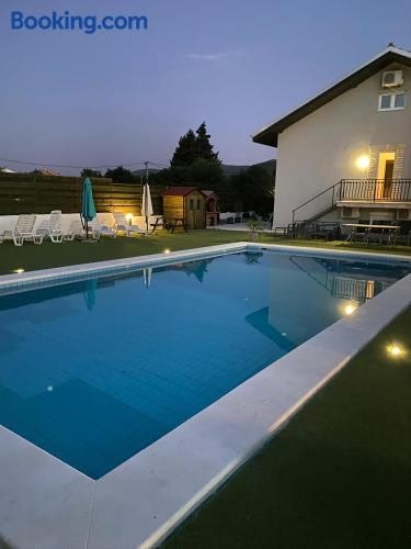 Boasting air-conditioned accommodation with a private pool, garden view and a patio, Villa Ema is situated in Drniš. This property offers access to a balcony, free private parking and free WiFi. Guests have access to a sauna and hot tub.