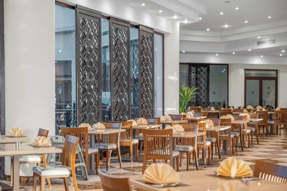 Aquest resort disposa de 2 piscines exteriors de forma irregular i d'1 piscina infantil amb vista panoràmica al mar Roig. Es troba a la platja de Sharks Bay i ofereix allotjament lluminós i una platja privada amb gandules i para-sols.
