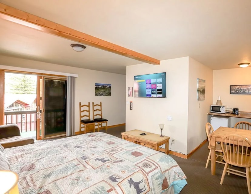 Nestled in the mountains, this Estes Park resort is 2 miles from the north entrance of Rocky Mountain National Park. It features a seasinal outdoor pool, free Wi-Fi and a seating next to Fall River.