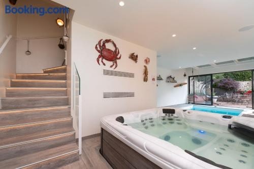 Located in Brech, 25 km from Parc des Expositions Lorient, Ty Al Louarn - Piscine - Spa provides accommodation with a hot tub and an indoor pool. Featuring free private parking, the 4-star holiday home is 23 km from Plouharnel Train Station.