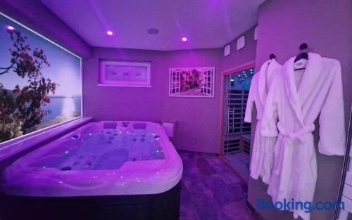 2.9 km from Bleriot in Calais, SPA & SAUNA lin pour l'autre features accommodation with access to a hot tub, hammam and spa facilities. The property is around 3.4 km from Calais Railway Station, 11 km from Cap Blanc Nez and 28 km from Cap Gris Nez.