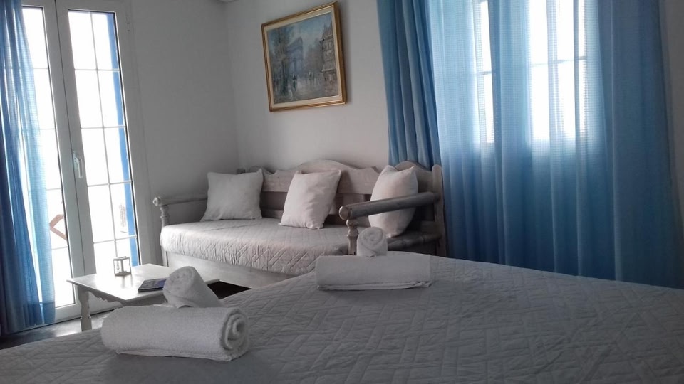 Location Looking for a place to spend a night after a long walk around the city? Hotel «Maria's View» is located in Ios. This hotel is located in the very center of the city. Before going to bed, you can walk around the main landmarks of the city. You can take a walk and explore the neighbourhood area of the hotel. Places nearby: Yialos Beach, Mylopotas Beach and Santorini Old Harbor.At the hotel Free Wi-Fi on the territory will help you to stay on-line. Specially for tourists who travel by car, there’s a free parking zone. If you travel by car, you can park in a parking zone. You won’t be bored as at the hotel you will find a picnic area. To book an excursion, consult the tour assistance desk of the hotel. Additional services that the hotel offers to its guests: a laundry and ironing.Room amenities In the room, for you, there is a shower, a TV and a mini-bar. The room equipment depends on its category.