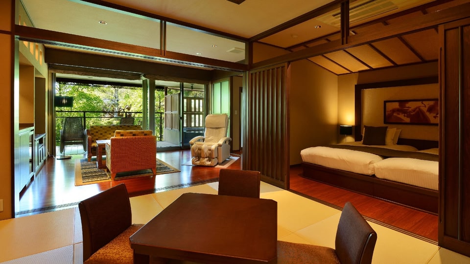 Whilst being in the center of the Dogo Onsen, one of the most traditional hot springs resorts in Japan, this hotel features a sophisticated interior, and is designed specifically for adults to enjoy a holiday getaway. All guest rooms feature a private open-air bath with hot springs water drawn straight from the source.