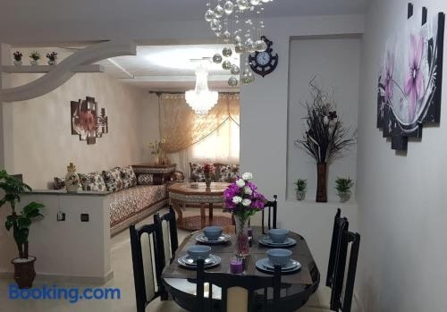 Appart-ines l'Oasis du confort et luxe is set in Oujda. This property offers access to a balcony, free private parking and free WiFi. The apartment is composed of 3 bedrooms, a fully equipped kitchen, and 1 bathroom. A flat-screen TV is featured.