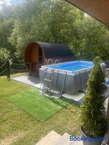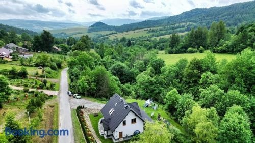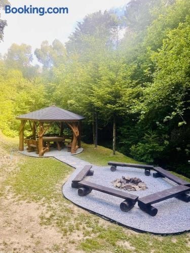 Boasting mountain views, BIESZCZADY Gabra Chata offers accommodation with a garden, barbecue facilities and a shared lounge, around 35 km from Skansen Sanok. This property offers access to a terrace, free private parking and free WiFi.