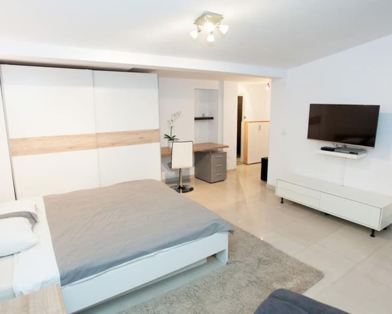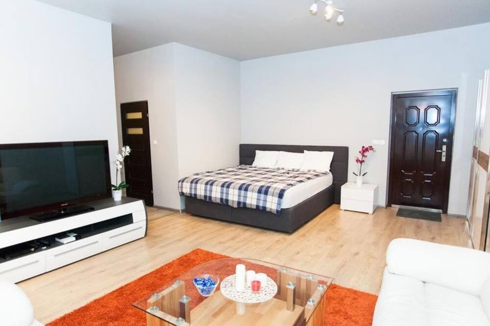 Location A perfect fit for a big group of travellers: apartment «Studio Apartament Centrum Katowice» is located in Katowice. This apartment is located in the very center of the city. In the morning, have a cup of coffee while looking at the city from the window. You can take a walk and explore the neighbourhood area of the apartment — Silesian Philharmonic, Goldstein Palace and Silesian Museum.At the apartment Want to be always on-line? Wi-Fi is available. If you travel by car, you can park in a parking zone. Get ready for a fun and exciting vacation! Here’s what you will find on the premises: a picnic area. Take your pet with you. Pets are allowed. There are other services available for the guests of the apartment. For example, ironing. The staff of the apartment speaks English, German and Polish.Room amenities The room is warmly decorated and has everything you need to have a rest after a long eventful day. There is a shower, a TV and a mini-bar. Please note that the listed services may not be available in all the rooms.