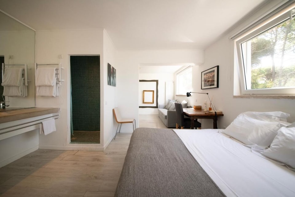 This eco-lodge is set in the Arrábida Nature Reserve and features rooms with sea views from their private patios. There is a salt-water pool, tennis court and holistic spa. License number: 8629/AL