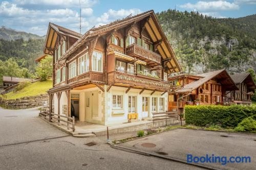 Offering a shared lounge, Wasserfallhüsli in Lauterbrunnen, near Interlaken, Mürren, Wengen provides accommodations in Lauterbrunnen. Among the facilities of this property are a restaurant, a shared kitchen, and a mini-market, along with free Wifi throughout the property. Outdoor seating is also available at the apartment. Providing a terrace and mountain views, the spacious apartment includes 2 bedrooms, a living room, satellite flat-screen TV, an equipped kitchen, and 1 bathroom with a bath and a shower. Towels and bed linen are featured in the apartment. For added privacy, the accommodation has a private entrance and soundproofing. A ski pass sales point is available on-site and skiing can be enjoyed close to Wasserfallhüsli in Lauterbrunnen, near Interlaken, Mürren, Wengen. Grindelwald Terminal is 10 miles from the accommodation, while Giessbachfälle is 20 miles away. Zurich Airport is 88 miles from the property.