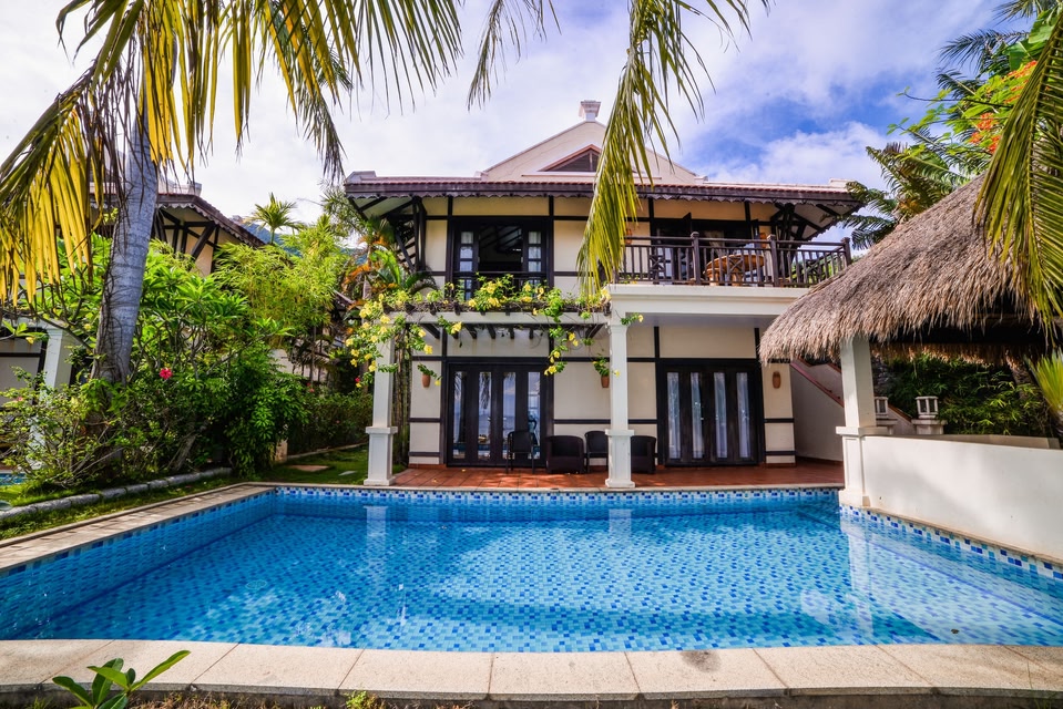 This large resort in Danang, is situated on the Son Tra Peninsula (Monkey Mountains), along the Danang Bay and private beach. The French-style villas are set against a backdrop of mountains and lush greenery.