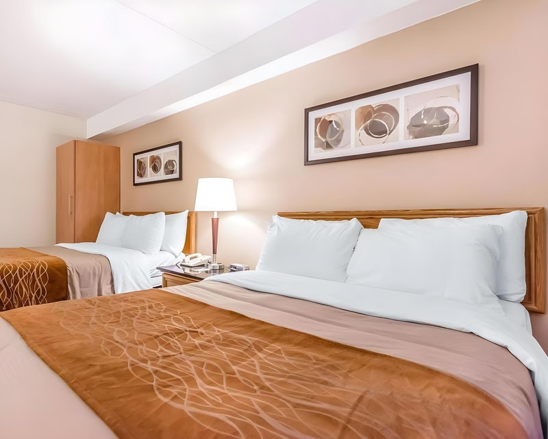 Comfort Inn Riviere-du-Loup de Rivière-du-Loup está en el barrio financiero y a menos de cinco minutos en coche de Manoir Fraser y Centro de exploración de St. Lawrence. Además, este hotel se encuentra a 1,8 km de Río San Lorenzo y a 3 km de Cégep de Rivière-du-Loup. Con bicicletas de alquiler y muchas otras instalaciones recreativas a tu disposición, no te quedará ni un minuto libre. Tienes también jardín donde sentarte a contemplar el paisaje. Encontrarás además conexión a Internet wifi gratis y un salón de fiestas. Todos los días se ofrece un desayuno bufé gratuito. Tendrás un centro de negocios, check-in exprés y periódicos gratuitos en el vestíbulo a tu disposición. Hay un aparcamiento sin asistencia gratuito disponible. Te sentirás como en tu propia casa en cualquiera de las 67 habitaciones con decoraciones diferentes, equipadas con frigorífico y microondas. Las camas cuentan con colchones con una capa de acolchado adicional y ropa de cama de alta calidad para descansar plácidamente. La conexión wifi gratis te permitirá estar al tanto de todo. Para tus momentos de ocio, tendrás una televisión LCD de 32 pulgadas con canales por cable. El baño privado con ducha y bañera combinadas está provisto de artículos de higiene personal gratuitos y secadores de pelo.
