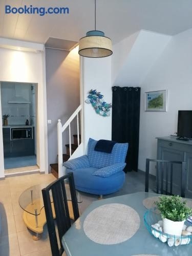 La maison bleue está a ubicado a 4 minutos a pie de Playa de Fécamp y a 17 km de Acantilados de Étretat, y ofrece wifi gratis y una terraza. La casa 3 estrellas está a 41 km de Iglesia de Saint-Michel. La casa dispone de 2 dormitorios, kitchenette con heladera y lavavajillas, 1 baño con ducha, artículos de tocador de cortesía y lavarropas. Se ofrece televisión de pantalla plana. La casa está a 42 km de Perret Model Appartment y Volcán está a 43 km de distancia. El aeropuerto más cercano es el Aeropuerto de Deauville - Saint-Gatien, a 57 km del alojamiento.