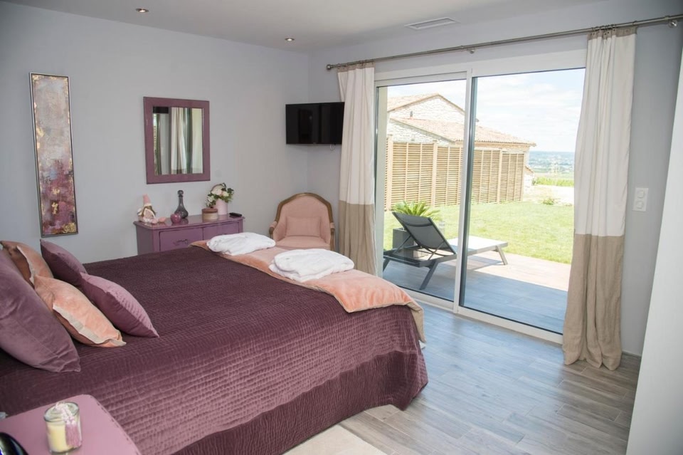 Aux Escapades de Monbazillac está en Monbazillac y ofrece una terraza con vistas a la ciudad y a la piscina, además de piscina al aire libre abierta todo el año, sauna y bañera de hidromasaje.