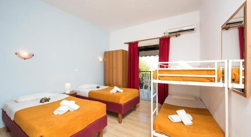 Prime LocationNestled in the heart of Benitses, just steps from Benitses Beach and Kaiser Bridge Beach, Aurora Studios offers a prime location for your Corfu getaway.Comfortable AccommodationEnjoy air-conditioned studios with a terrace, free WiFi, and a fully equipped kitchenette, providing a comfortable stay for guests.Nearby AttractionsExplore popular landmarks such as Achilleion Palace, Pontikonisi, and Panagia Vlahernon Church, all within a short distance from the property.Experience the ultimate relaxation and convenience at Aurora Studios. Book now for an unforgettable stay in Corfu.