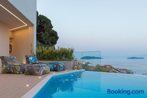 Situated in Skiathos Town and only 200 metres from Megali Ammos Beach, Villa K features accommodation with sea views, free WiFi and free private parking. With garden views, this accommodation provides a balcony.