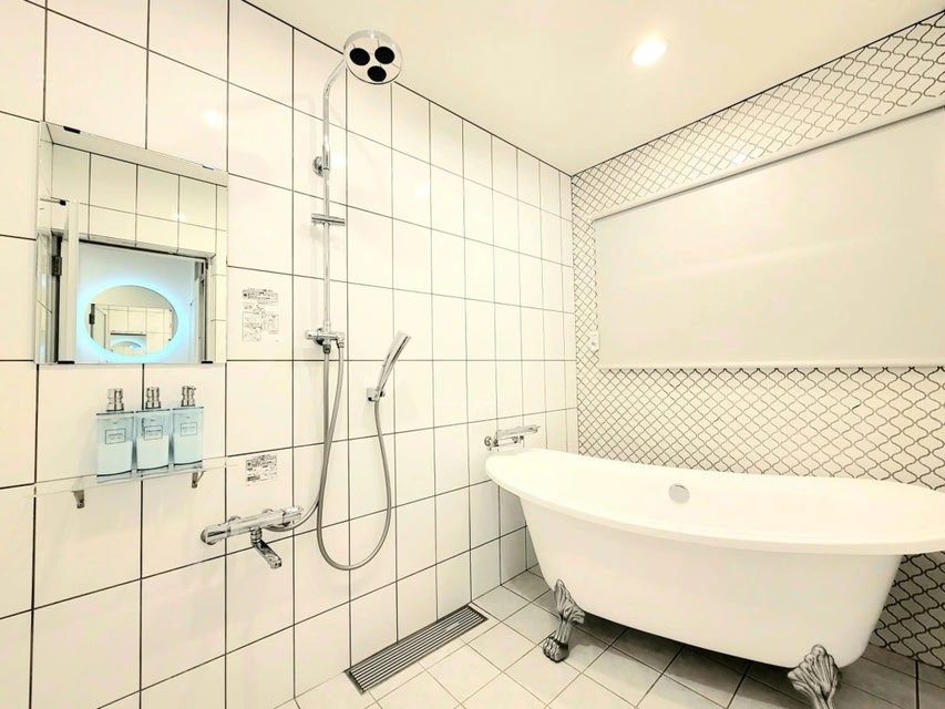 Featuring a spa bath, "沖縄の美ら海をイメージしたコンセプトルーム&スマートハウス, 人気のリゾートタウン北谷で暮らすように過ごす, ゆったり64平米2LDK" Villa Blu Okinawa Chatan 2-1 ヴィラブルー沖縄北谷2-1 is located in Chatan. The air-conditioned accommodation is 7.