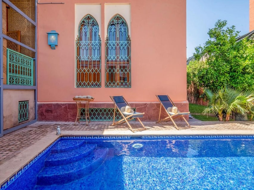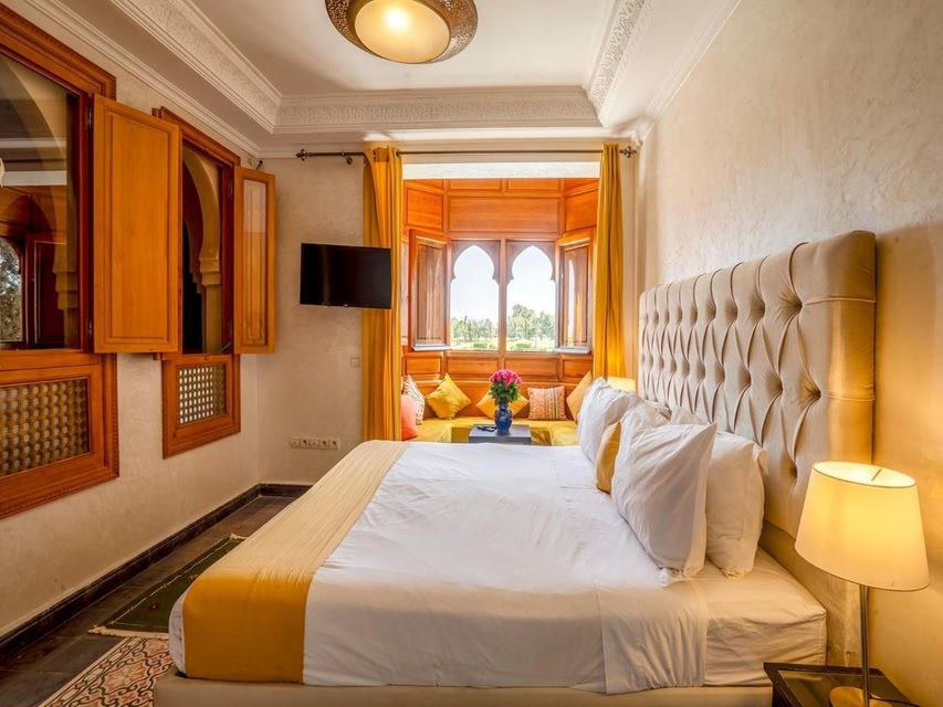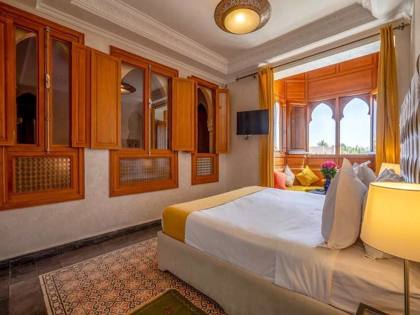 Riad RAM provides wellness packages and beauty services, as well as air-conditioned accommodations in Marrakesh, 3 miles from Menara Gardens. 3.2 miles from Djemaa El Fna and 3.4 miles from Koutoubia, the property offers a bar and a shared lounge. The riad features an outdoor swimming pool with a pool bar, as well as a spa facilities and a 24-hour front desk. Each unit is fully equipped with a washing machine, a flat-screen TV, a sofa, and wardrobe. Every room is fitted with a private bathroom, a safety deposit box, and free Wifi, while certain rooms have a terrace and some have mountain views. At the riad, every unit is fitted with bed linen and towels. À la carte and continental breakfast options with local specialities, fresh pastries, and pancakes are available. Guests are welcome to eat at the on-site traditional restaurant, which is open for dinner, lunch, brunch, and cocktails. Sightseeing tours are available within easy reach. Outdoor play equipment is also available at the riad, while guests can also relax in the garden. Bahia Palace is 3.6 miles from Riad RAM, while Le Jardin Secret is 3.7 miles away. Marrakech-Menara Airport is 1.9 miles from the property, and the property offers a paid airport shuttle service.
