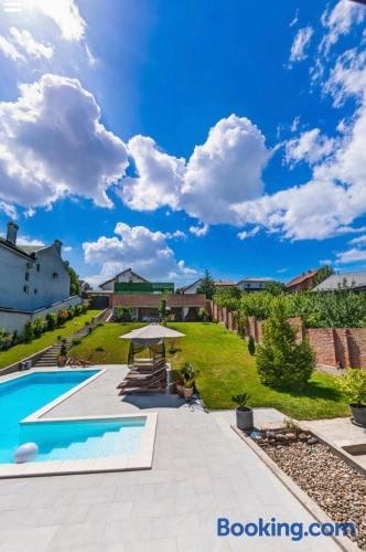 Featuring air-conditioned accommodation with a private pool, Infinity is located in Novi Sad. This property offers access to a patio, darts, free private parking and free WiFi. Outdoor seating is also available at the villa.
