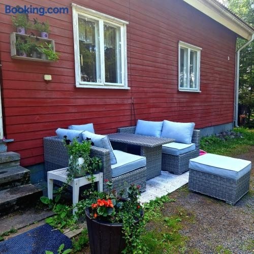 Situated in Kauttua in the Western Finland region, Majoitus Eura has a garden. This property offers access to a balcony, free private parking and free WiFi. Outdoor seating is also available at the apartment.